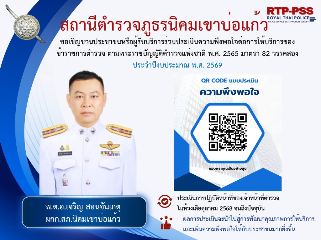 นที่ 28 ก.ค. 2567 เวลา 07.00 น. พ.ต.ต.มาโนช เปรมวัฒนะ สวป.สภ.นิคมเขาบ่อแก้ว,ร.ต.ต.ทวีป บุญเจริญ,ร.ต.