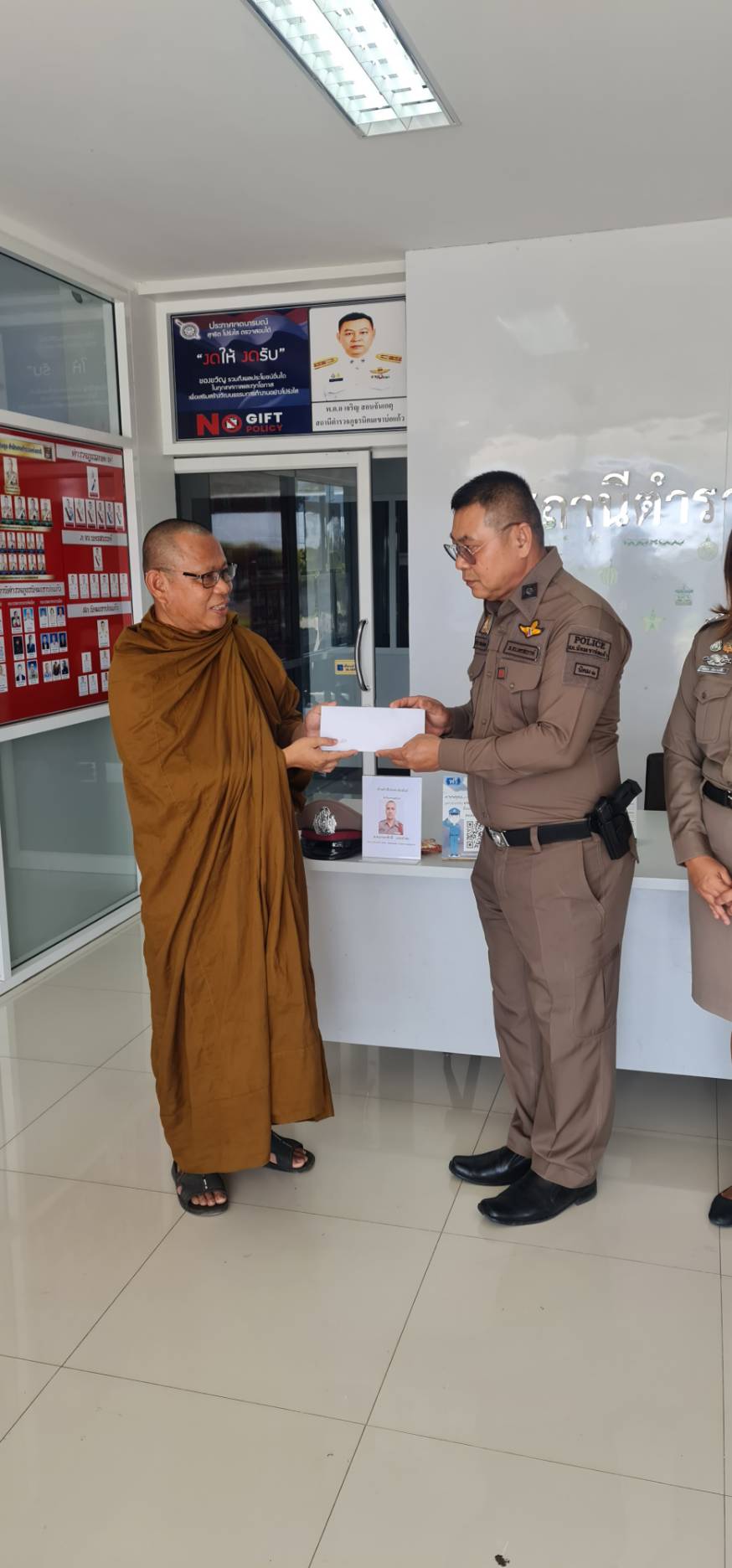 พระครูรวย อู่คงคา เจ้าอาวาสวัดอุดมธรรมพุทธรังษี หมู่ 11 ต.เขาทอง อ.พยุหะคีรี จ.นครสวรรค์ ได้เข้าพบ ผกก.เจริญ สอนจันเกตุ ผกก.สภ.นิคมเขาบ่อแก้ว พร้อมด้วย พนักงานสอบสวนเจ้าของคดี และเจ้าหน้าที่ตำรวจชุดสืบสวน เพื่อมอบเงินจำนวน 4,000 บาท ให้แก่ สภ.นิคมเขาบ่อแก้ว เพื่อเป็นขวัญและกำลังใจให้แก่เจ้าหน้าที่ตำรวจที่ปฏิบัติหน้าที่สืบสวนสอบสวน จนสามารถติดตามตัวผู้กระทำความผิดที่ได้ลักรถยนต์กระบะและเครื่องตัดหญ้าของวัดไป มาดำเนินคดีได้ตามกฎหมาย และสามารถช่วยติดตามรถยนต์กระบะและเครื่องตัดหญ้าของวัดกลับคืนมาได้อย่างรวดเร็ว