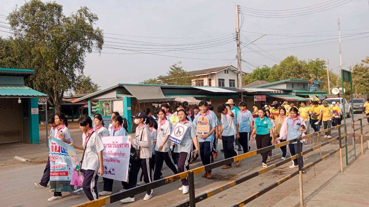 ร่วมเดินรณรงค์ป้องกันห่างไกลยาเสพติด ณ ถนน.ในหมู่บ้าน ต.เขาทอง