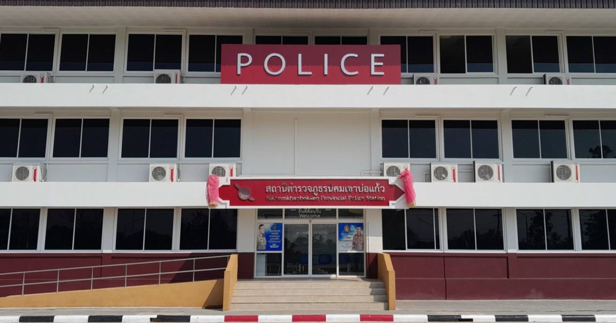 สถานีตำรวจภูธรนิคมเขาบ่อแก้ว แต่เดิมมีชื่อว่า สถานีตำรวจภูธรนิคมหัวงิ้ว เดิมเป็นที่พักของตำตรวจ มีหน้าที่ควบคุมบุคคลไร้อาชีพ ของสถานกักกันบุคคลไร้อาชีพ ต่อมาเมื่อวันที่ 23 พฤศจิกายน 2479 กรมประชาสงเคราะห์ ได้จัดตั้งเป็นนิคมสร้างตนเองเขาบ่อแก้ว และได้จัดสร้างตัวอาคารสถานีตำรวจและบ้านพัก โดยได้ขอกำลังตำรวจให้อยู่ประจำ โดยใช้ชื่อว่า “สถานีตำรวจภูธรนิคมหัวงิ้ว” และกรมประชาสงเคราะห์ ได้โอนตัวอาคารสถานีตำรวจและบ้านพัก ให้กับกรมตำรวจเมื่อปี พ.ศ. 2523
