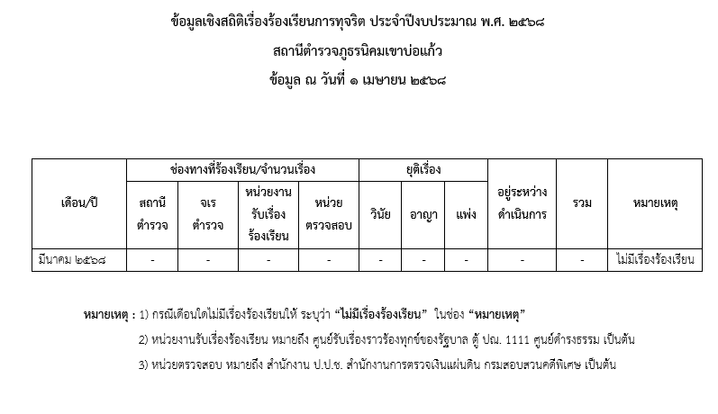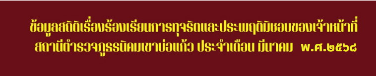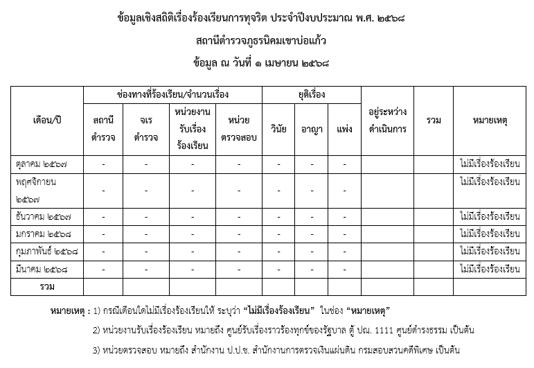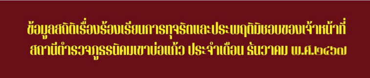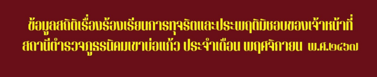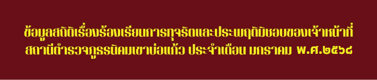 ข้อมูลสถิติเรื่องร้องเรียนการทุจริตและประพฤติมิชอบของเจ้าหน้าที่ของสถานีตำรวจภูธรนิคมเขาบ่อแก้ว