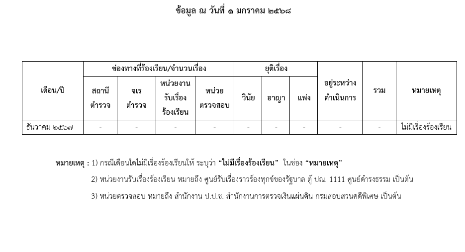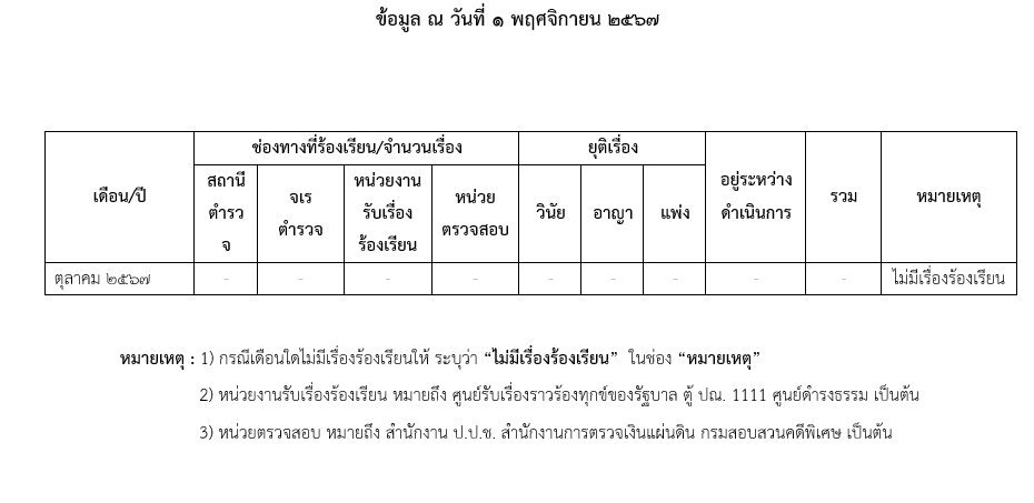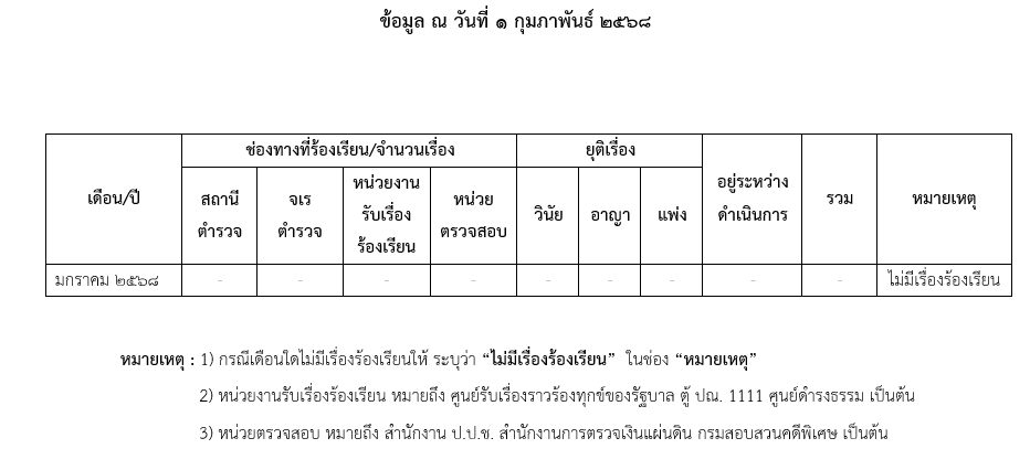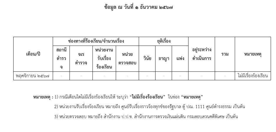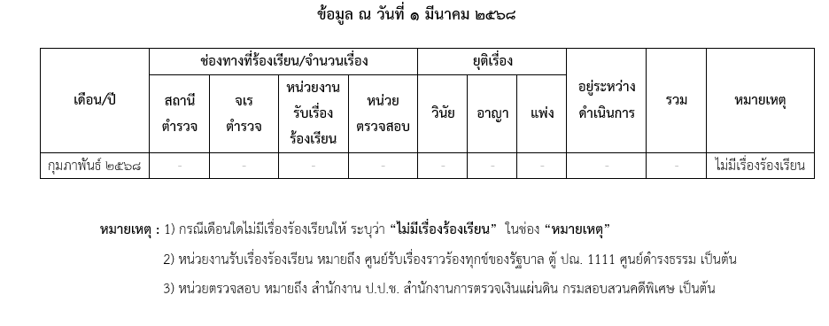 • มีข้อมูลความก้าวหน้าการจัดการเรื่องร้องเรียน